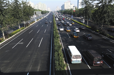 10月11日上午,汽车行驶在修整一新的西三环上。今年北三环西三环大修,不久将全部完工。新京报记者 浦峰 摄