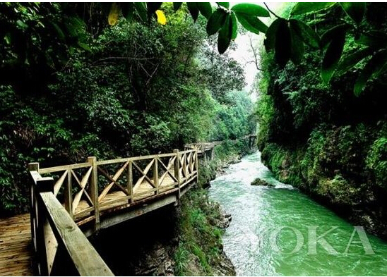 南江大峡谷两岸山峰险峻,只剩头顶那一线青天。上千米的悬空栈道在眼前左右晃动着,栈道在几座铁索桥的连接下,时左时右摇晃,盘绕在南江两岸悬崖绝壁上。 颤颤巍巍地走在曲折栈道上,每迈一步都显得艰难。低头是湍急的流水,大有山雨欲来之势,浪打浪的急流在脚下奔走。这看似摇摇欲坠的栈道让整个人晕乎乎的,好在有惊无险。