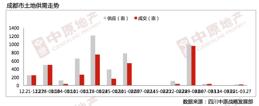 从区域分布来看,据四川中原监测数据显示,上周主城区无土地供应及成交。郊县区土地供应面积21.41亩 ;土地成交面积21.41亩,约合1.43平方米,总可建面积约为3万平方米,平均楼面地价1250元/㎡ 。