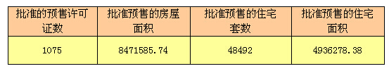 截止到4月25日,黄山房产市场批准的预售许可证数为1075个,批准预售的房屋面积8471585.74平米。批准预售的住宅套数为48492套,批准预售的住宅面积为4936278.38平米。
