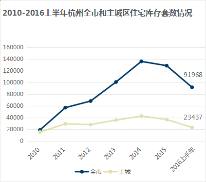 据戴德梁行研究部数据显示,2016年上半年,杭州全市住宅成交套数达到89,545套,已超越2014年整年杭州全市住宅成交套数;同时,杭州全市库存已大幅下降,由2015年13万套左右下降为91,968套。(数据来源:戴德梁行)