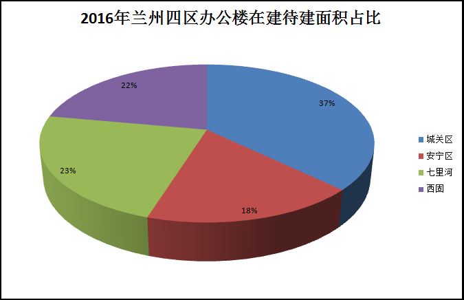 总的来说,城关区办公物业供应面积依旧居于首位,浮出水面的写字楼项目,其建筑面积约为205万平,其中在建面积有140万平,待建面积约为65万平;七里河区为130万平米,其中在建的写字楼项目面积近105万平,待建面积为25万平;安宁新增办公面积约为100万平,其中在建的办公物业的建筑面积约为50万平,待建面积有50万平米。西固区在建办公地产面积约为120万平,待建面积有5万平。
