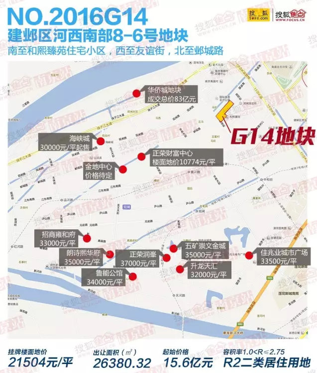 而目前河西多数楼盘售价尚未过三万五,较高的为正荣润峯37000元/平,河西南会是下一个地价反超房价的区域么?