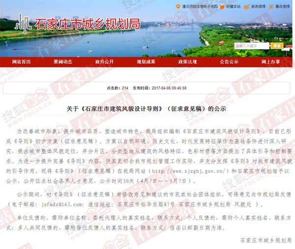 以下为关于《石家庄市建筑风貌设计导则》(征求意见稿)的公示原文: