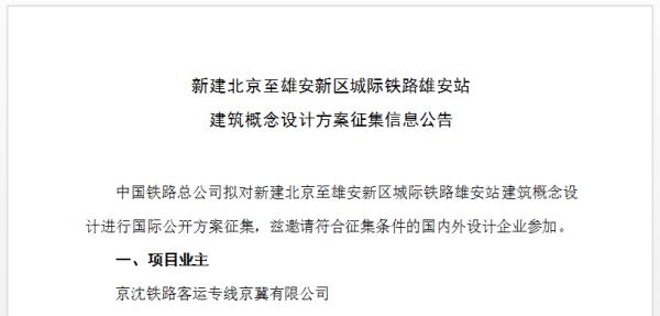 中国铁路经济规划研究院关于雄安站建筑概念设计方案征集的信息公告
