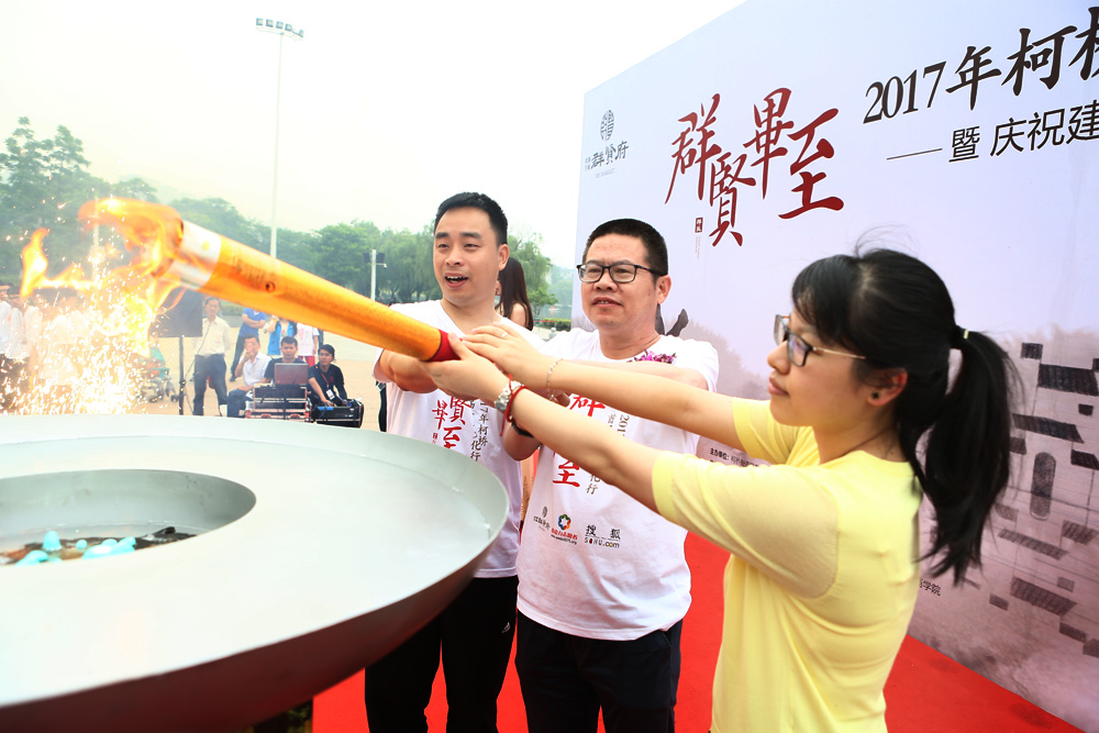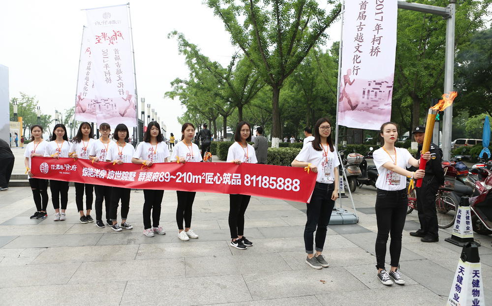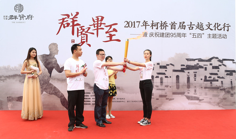 当天极具意义的环节便是,柯桥街道团委副书记 俞哲雯、绍兴祥生弘景房地产开发有限公司总经理黄焕忠、搜狐网绍兴公司总经理黄旭东、共同上台为本次活动点燃火炬,象征着古越文化薪火相传、生生不息,以及青年人热情澎湃的精神传递。