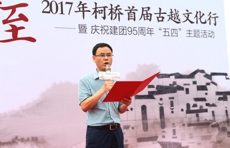 上午8点30分,2017年柯桥首届古越文化行正式拉开帷幕。柯桥街道党工委副书记裘华建率先上台致开幕词,发言中高度认可了本次古越文化行的举办意义,并纪念建团95周年,倡导青年传承古越文化,为柯桥建设贡献自己的力量。随后,祥生集团绍兴祥生弘景房地产开发有限公司总经理黄焕忠上台致辞,并代表祥生浙旅群贤府项目向微动力志愿者服务中心授予了公益捐款。