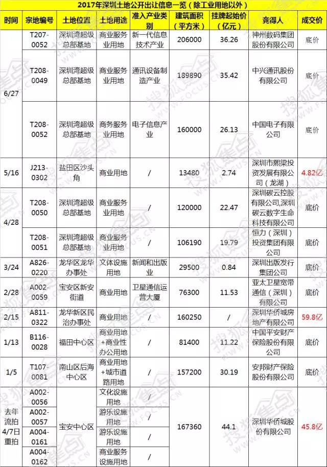 搜狐焦点统计2017年深圳土地公开售地信息发现,截止到目前为止仍未有居住用地售出,华侨城成为在深圳拿地出资最多的房企,达到105.6亿元。从区域上来看,深圳湾总部基地今年售地达140.07亿元,也是今年截止到目前最热门的区域。