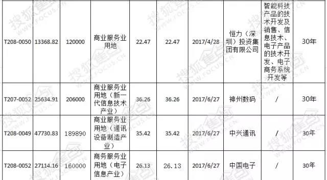 其中,神州数码以底价36.26亿购得T207-0052号宗地,楼面价为17602元/平。