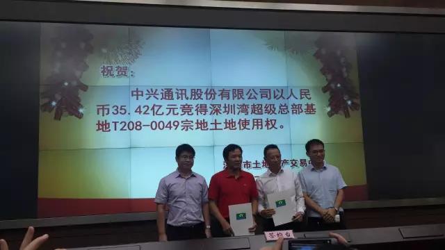 中兴通讯以底价35.42亿购得T208-0049号宗地,楼面价为18653元/平。